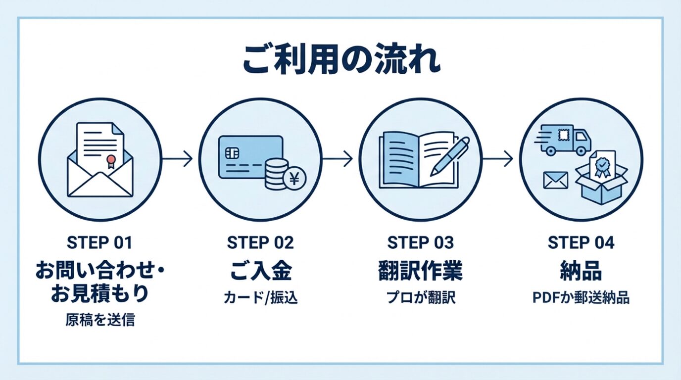 - 翻訳証明書 発行料:1,500円/翻訳対象書類ごと